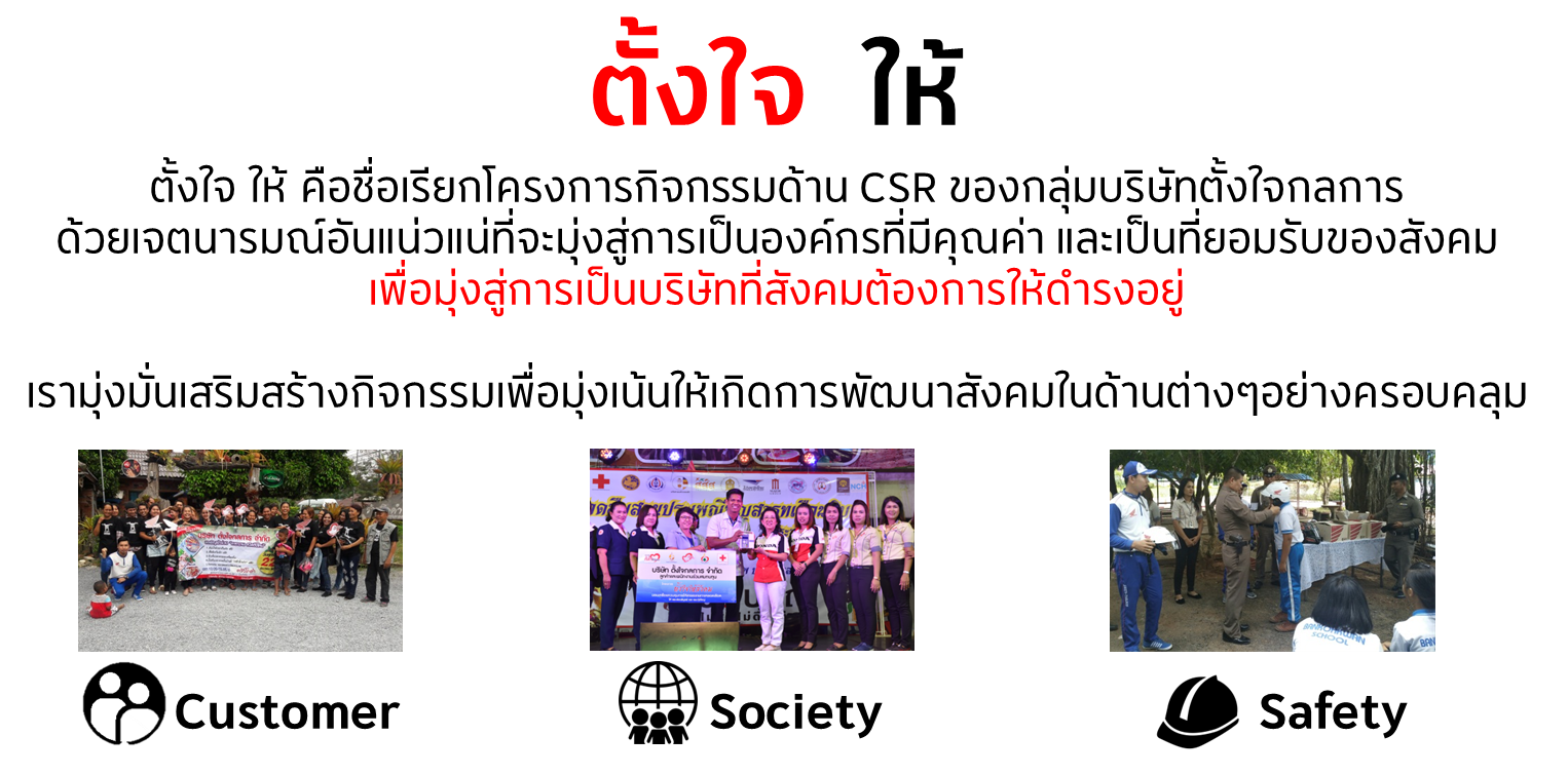 บริษัทฯ ได้ตระหนักในหน้าที่รับผิดชอบอันพึงมีต่อสังคม จึงเล็งเห็นถึงความสำคัญของการดำเนินกิจกรรมเพื่อสังคม อันเป็นการตอบแทนการไว้วางใจ และเป็นส่วนหนึ่งในการสร้างสังคมให้ยั่งยื่น