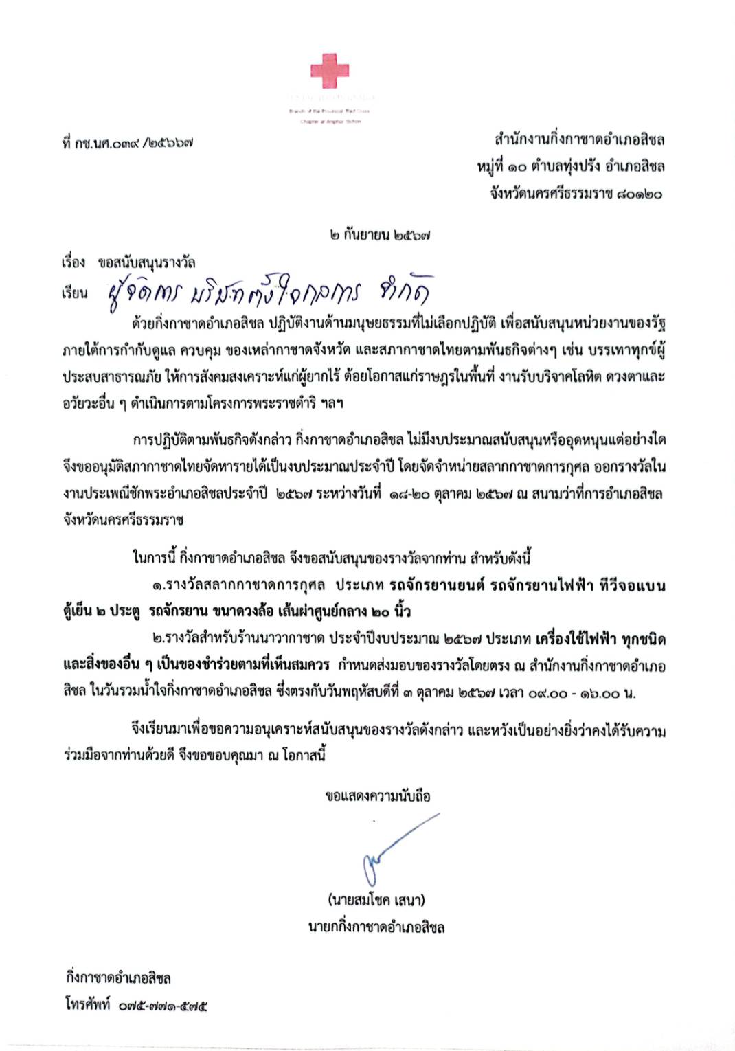| 03 ต.ค. 2567 เวลา 08:58 No. 202410003 | ลูกค้าสัมพันธ์ | 102-ตจ.ทุ่งใหญ่ 1 | ขอของแถมสนับสนุน งานกิ่งกาชาดอำเภอทุ่งใหญ่ วันที่ 8 ตุลาคม2567(ประเภทเครื่องใช้ไฟฟ้า) ไฟล์แนบ 1: | พัฒพงษ์ ชูยัง เจ้าหน้าที่ลูกค้าสัมพันธ์ | สำเร็จ | ||