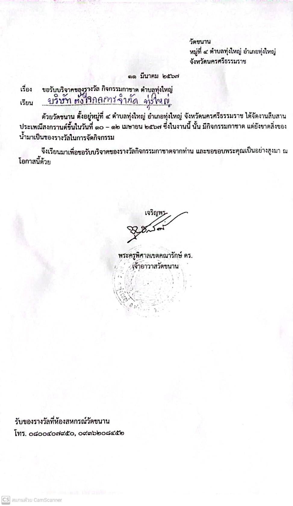 | 14 มี.ค 2567 เวลา 09:57 No. 202403018 | ลูกค้าสัมพันธ์ | 102-ตจ.ทุ่งใหญ่ 1 | ขอสนับสนุนของรางวัล กิจกรรมงานกาชาด ณ วัดขนาน ม.4 อ.ทุ่งใหญ่ 2567 ไฟล์แนบ 1: | พัฒพงษ์ ชูยัง เจ้าหน้าที่ลูกค้าสัมพันธ์ | สำเร็จ | ||