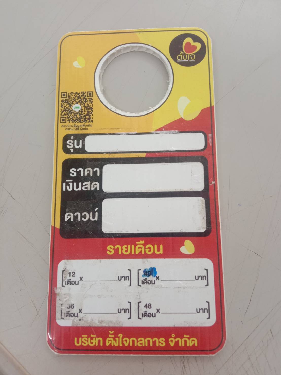 | 18 ม.ค. 2567 เวลา 08:38 No. 202401039 | ประชาสัมพันธ์ | 404-ตจ.กลการ หัวถนน | ขอที่หนีบป้ายราคาดาวน์รถเพิ่ม 5 อันและป้ายออกรถ0บาทอีก5ป้าย | วีรพล แก้วเกื้อกูล หัวหน้าฝ่ายการตลาด | สำเร็จ | ||
