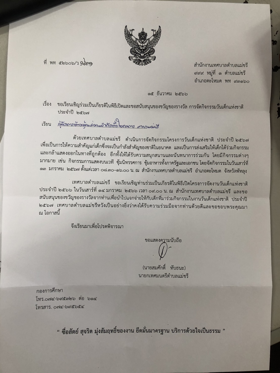 | 27 ธ.ค. 2566 เวลา 01:06 No. 202312064 | ลูกค้าสัมพันธ์ | 113-ตจ.มะนัง | สนับสนุนของขวัญวันเด็กแห่งชาติ ศูนย์พัฒนาเด็กเล็กองค์การบริหารส่วนตำบลละงู
