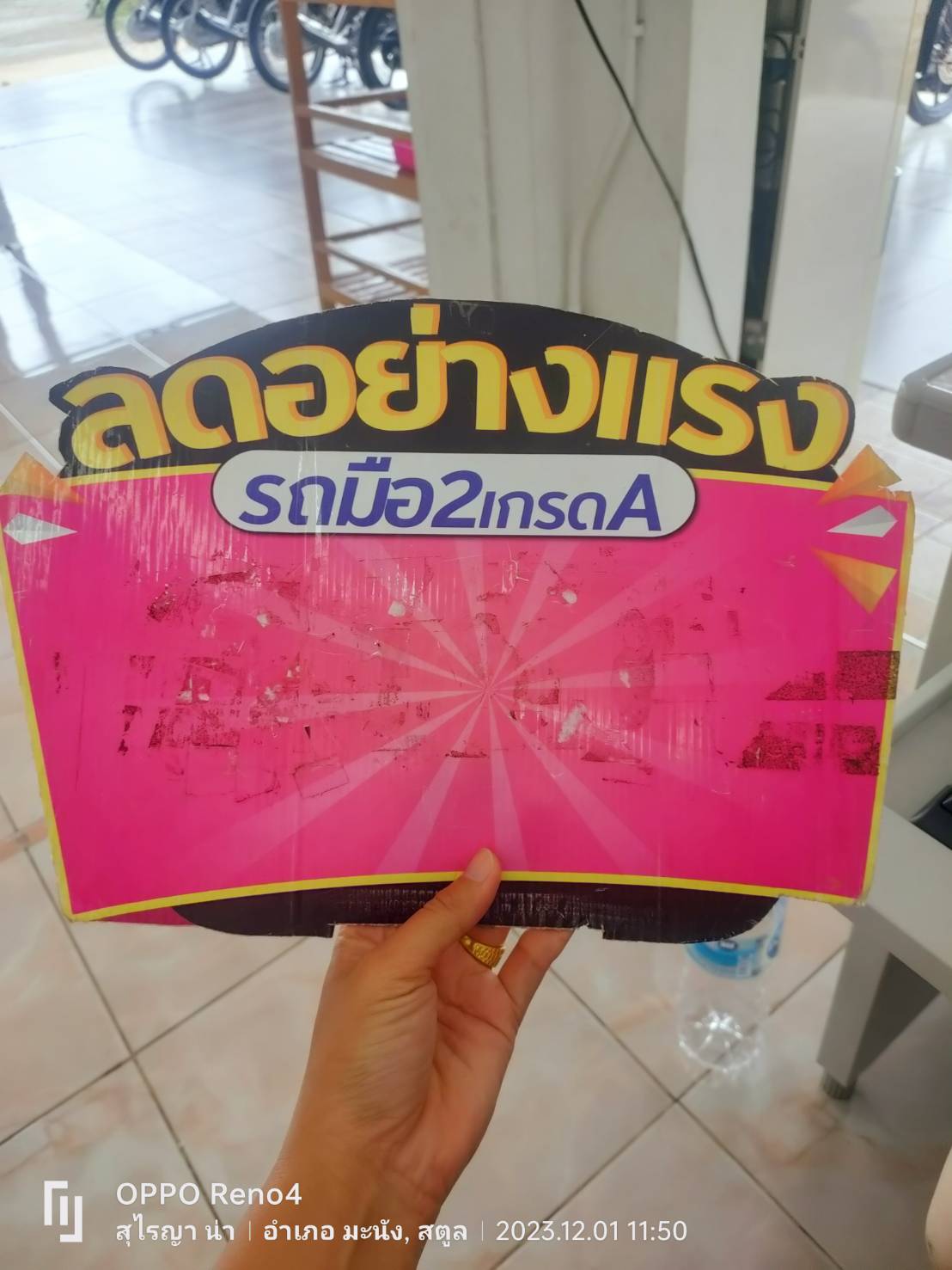 | 28 พ.ย 2566 เวลา 08:43 No. 202311024 | ส่งเสริมการขาย | 437-พย.ควนขนุน (โพธิ์ทอง 3) | ขอเบิกป้ายออกรถโปร 0 บาท พร้อมป้ายห้อย อย่างละ2 อัน | วีรพล แก้วเกื้อกูล หัวหน้าฝ่ายการตลาด | สำเร็จ | ||
