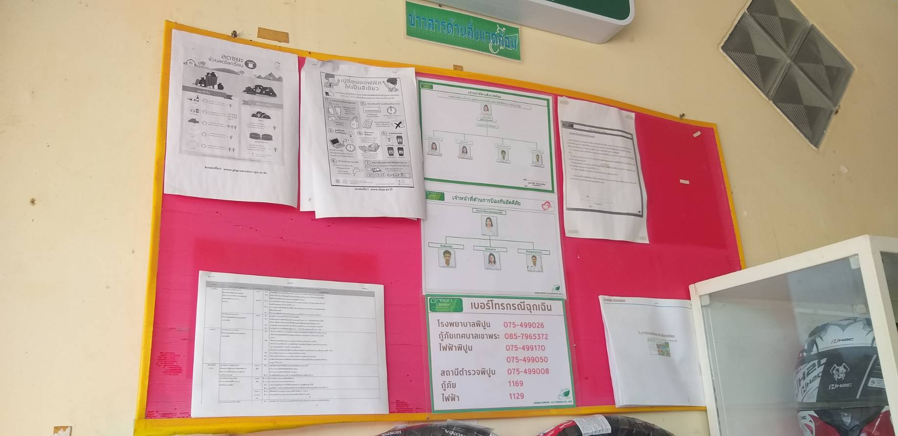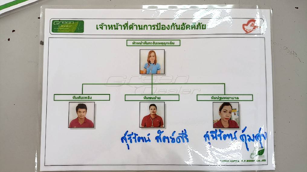 4ป้ายเจ้าหน้าที่ด้านการป้องกันอัคคีภัย ทีมขนย้าย สุรีรัตน์ สัตย์ศรี ทีมปฐมพยาบาล สุนีรัตน์ คุ้มสุข