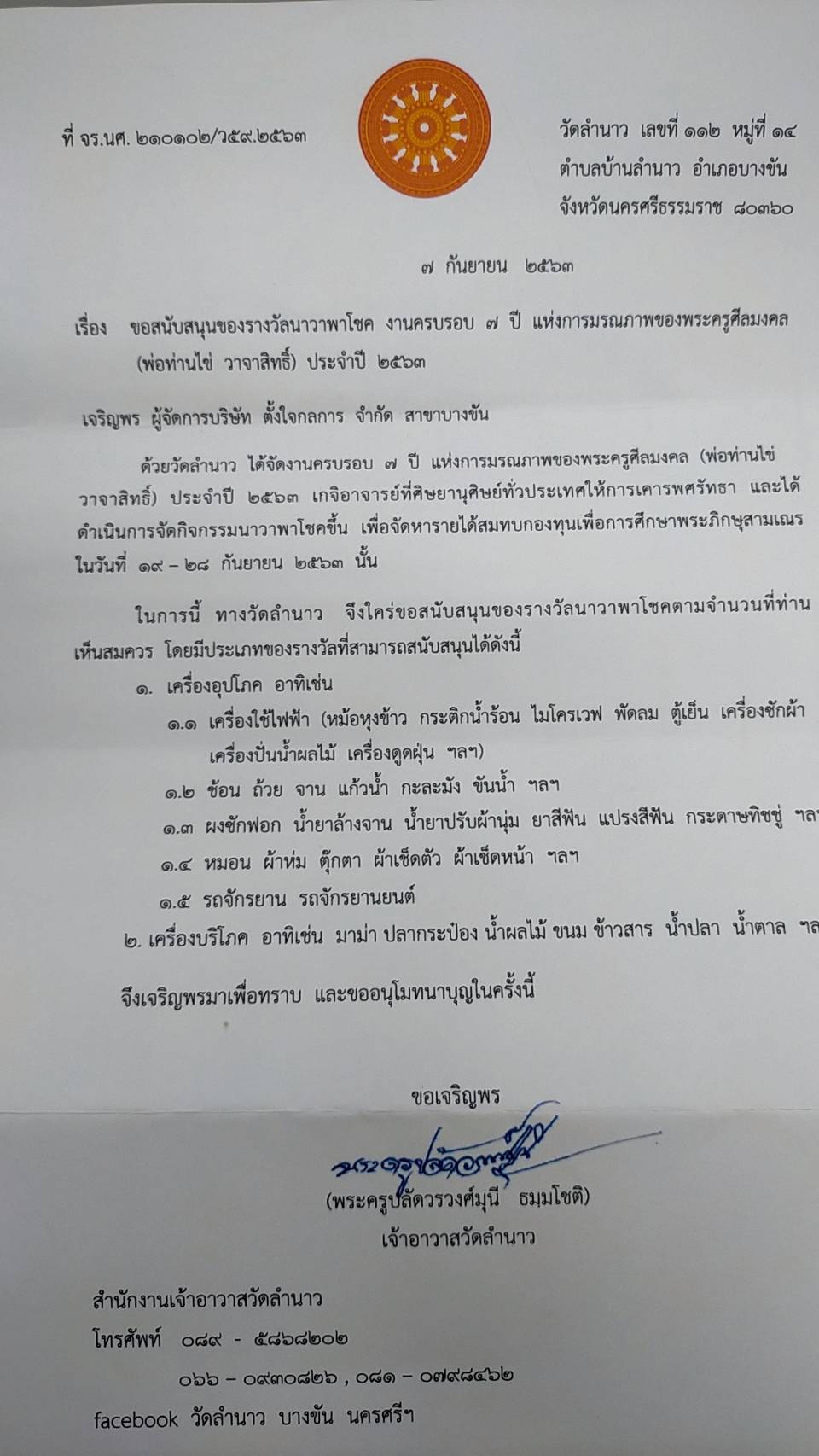 | 18 ก.ย. 2563 เวลา 14:04 No. 202009031 | ลูกค้าสัมพันธ์ | 121-ตจ.บางขัน | ด้วยทางวัดลำนาว บางขัน ขอสนับสนุนของรางวัล นาวาพาโชค ไฟล์แนบ 1: | รับเรื่อง > ส่งของให้สาขา | วีรพล แก้วเกื้อกูล หัวหน้าฝ่ายการตลาด | สำเร็จ | |