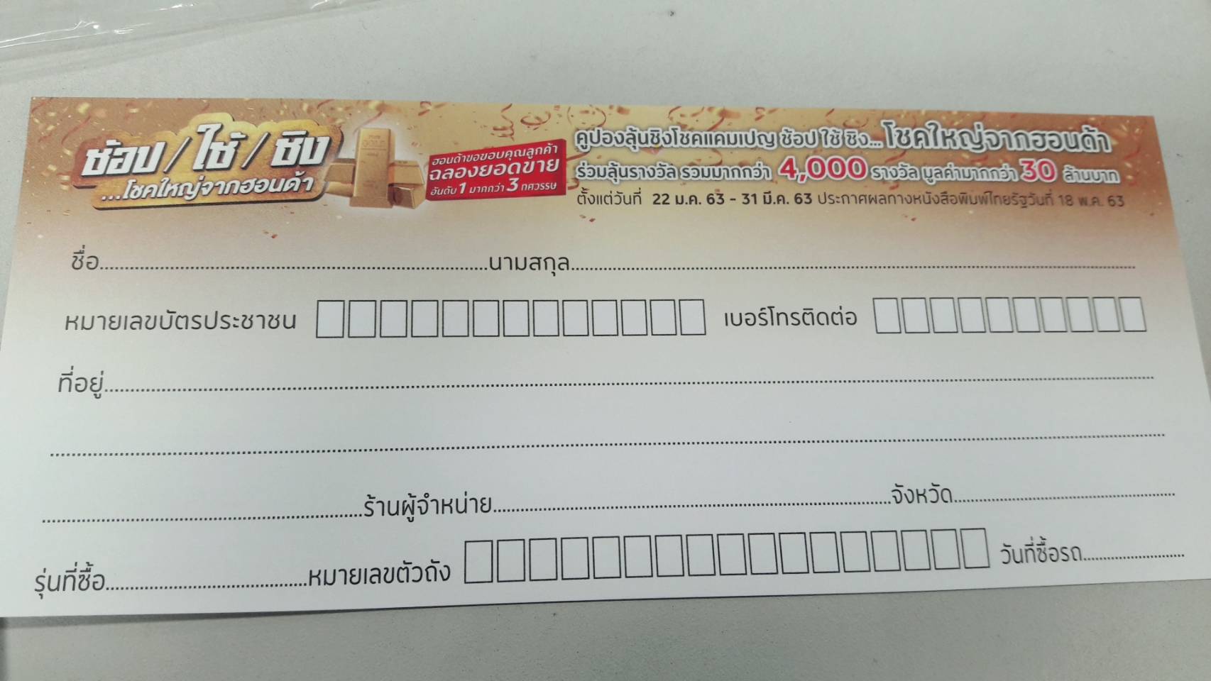 | 07 มี.ค 2563 เวลา 15:04 No. 202003028 | ส่งเสริมการขาย | 602-ตจ.ด่านนอก | ขอคูปอง ชิง / ช้อป / ใช้